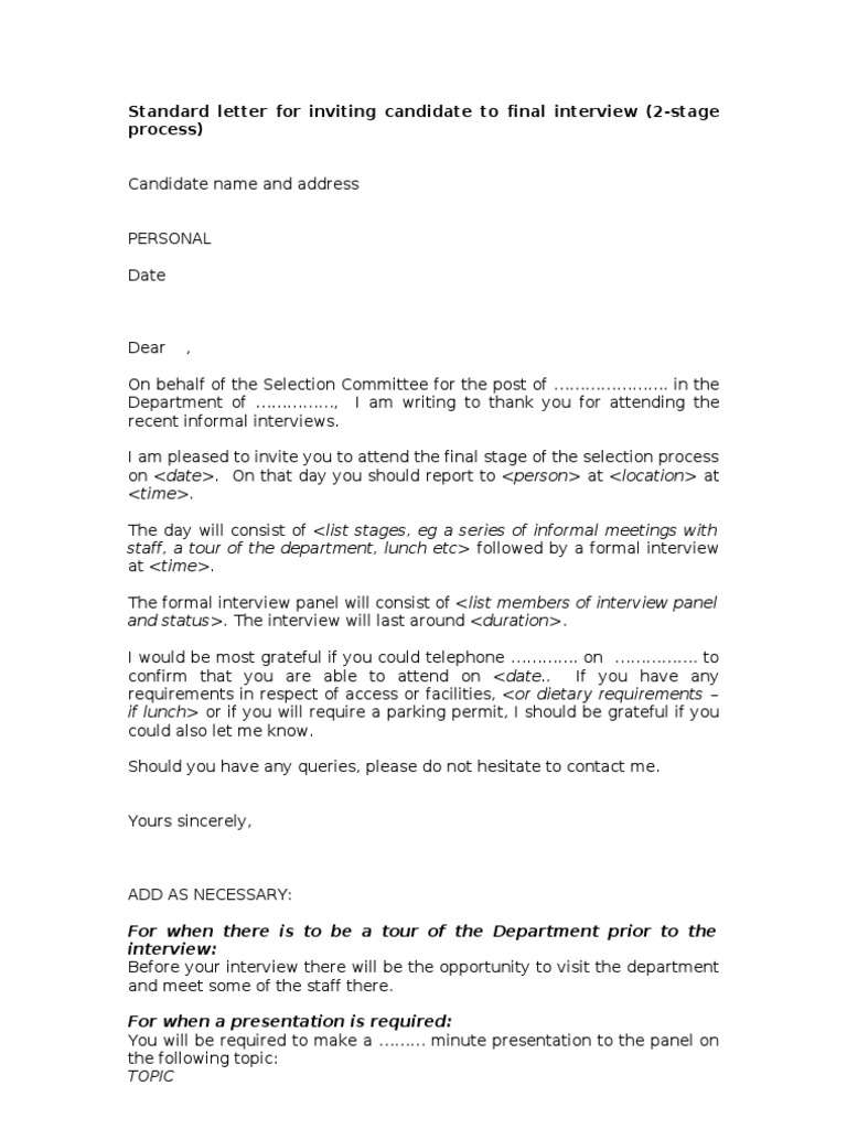 Letter Final Interview Invite Business